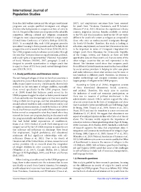 research on the outcomes of refugee children, especially of three interrelated dimensions: Social, economic,
