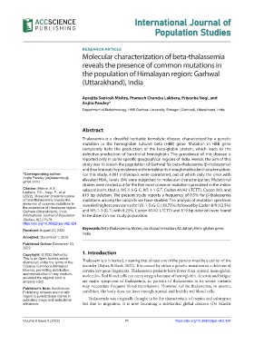 Anjita Pandey (anjitapandey@ elevated HbA levels (64) were subjected to molecular characterization. Mutational