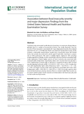 Survey. International Journal of be used to inform public health research and interventions for food insecurity and