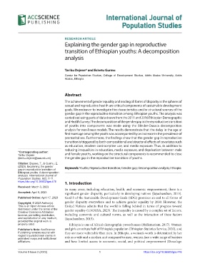 gap in reproductive transition of Keywords: Youths; Reproductive transition; Gender gap; Decomposition analysis; Ethiopia