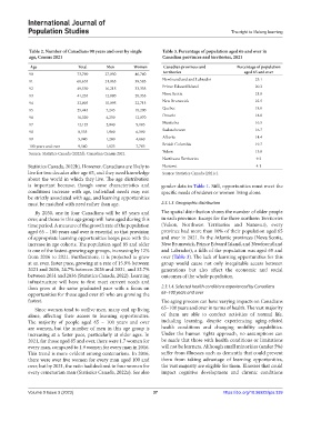 Table 2. Number of Canadians 90 years and over by single Table 3. Percentage of population aged 65 and over in