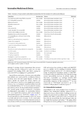 Table 1. Summary of representative antioxidant nanomedicines for the treatment of cardiovascular diseases