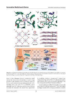 metal node and MnTCPP in the nanocatalyst. (E) Layered structure of the nanocatalyst. (F) Antiarthritic mechanism of the biomimetic nanocatalyst.
