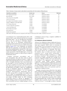 Antioxidant nanomedicine Reaction type Disease References