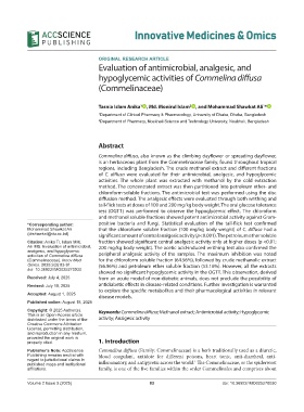 Copyright: © 2025 Author(s). Keywords: Commelina diffusa; Methanol extract; Antimicrobial activity; Hypoglycemic