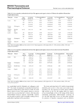 Table 11. In vivo repository antimalarial activity of the aqueous and organic extracts of Lawsonia inermis in Plasmodium