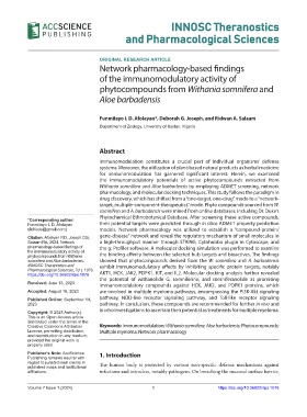 Creative Commons Attribution Keywords: Immunomodulation; Withania somnifera; Aloe barbadensis; Phytocompounds;