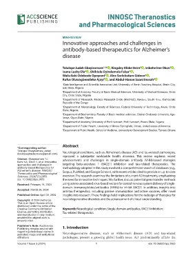 Alzheimer’s disease. INNOSC Scopus, PubMed, and Google Scholar), with recent articles cited to provide an up-to-date