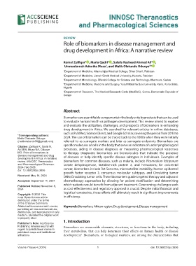 AttributionNoncommercial License, Keywords: Biomarkers; African region; Drug development; Disease management