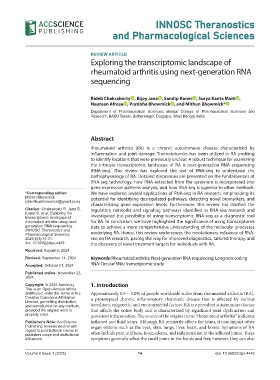 *Corresponding author: We have explored several applications of RNA-seq in RA research, emphasizing its
