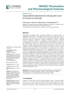 doi: 10.36922/itps.4458 specific mechanisms in CUD. Nonetheless, subanesthetic ketamine is a promising