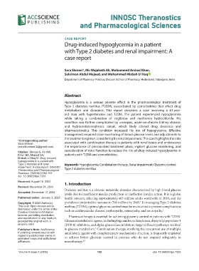 Citation: Shreen S, Ali MW, consideration of renal function to reduce the risk of drug-induced hypoglycemia in