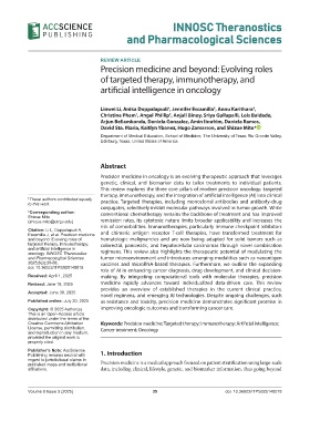 Creative Commons Attribution Keywords: Precision medicine; Targeted therapy; Immunotherapy; Artificial intelligence;