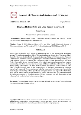 Citation: Zhang D, 2022, Pingyao Historic City and Qiao Family Courtyard. Journal of
