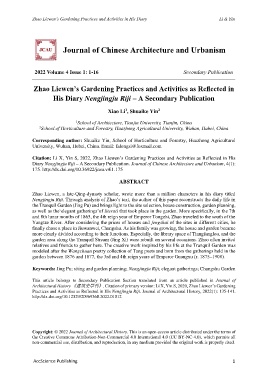 Citation: Li X, Yin S, 2022, Zhao Liewen’s Gardening Practices and Activities as Reflected in His