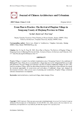 Citation: Sun N, Luo D, Tang W, 2022, From Plan to Practice: The Revival of Pingtian Village in