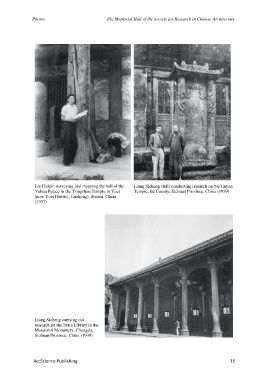 Lin Huiyin surveying and mapping the hall of the Liang Sicheng (left) conducting research on the Jinyun