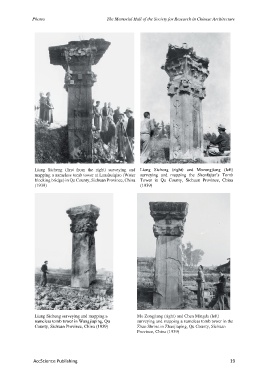 Liang  Sicheng  (first  from  the  right)  surveying  and  Liang  Sicheng  (right)  and  Mozongjiang  (left)