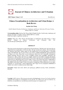 Citation:  Wong  KA,  2022,  Chinese  Exceptionalism  in  Architecture  and  Urban  Design:  A  Book