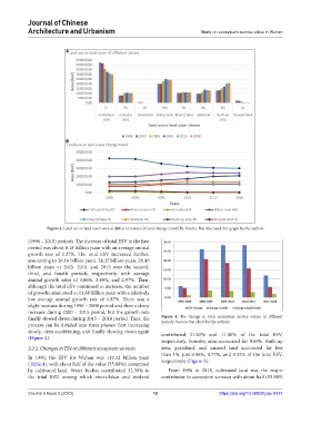 finally slowed down during 2015 – 2018 period. Thus, the Figure 4. The change in total ecosystem service values in different
