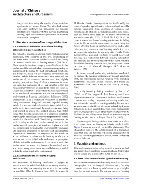 and behavioral needs of the residential environment are In Korea, research on housing satisfaction, conducted