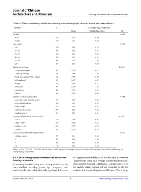 Table 6. Differences in housing satisfaction according to sociodemographic characteristics of apartment residents