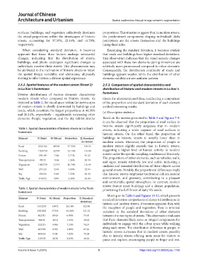 depicted in Table 2, the visual space within the streetscapes of the proportion and standard deviation of each element