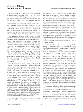 In the third article, Liu et al. (2023) examined the Chinese settlements and vernacular architecture – a task of