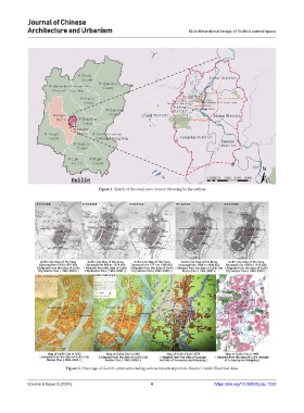 Figure 2. Drawings of Guilin’s urban area during various historical periods. Source: Guilin Historical Atlas