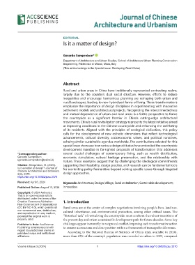 Received: April 6, 2024 Keywords: Architecture; Design; Village; Rural revitalization; Sustainable development;