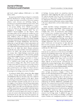 self-confidence (Maags, 2021; Zhu, 2018). Second, urban participation in preserving heritage values. Residents are