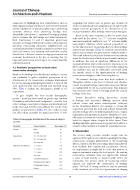 Variables Characteristics Percentage (%) preserve urban memory and residents’ actual experiences.