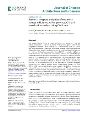 Accepted: October 16, 2024 Keywords: Huizhou traditional houses; CiteSpace; Hotspots and paths; Cultural heritage;