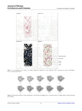 Figure 8. Exploring the evolution of urban morphology in the Dashilar area, Beijing, China, as density increases via cellular automata. Source: Drawing