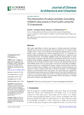 Published online: April 3, 2025 Keywords: Child-friendly city; Play spaces; 7Cs framework; Heritage park; Evaluation