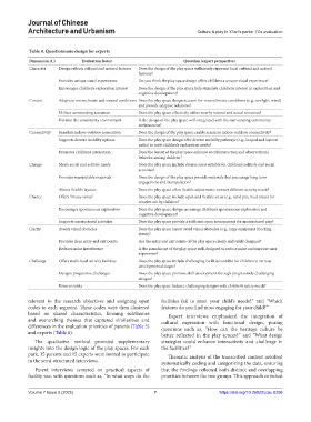 and experts (Table 6). better reflected in the play spaces?” and “What design