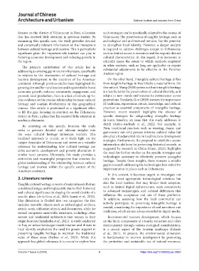 preserving tangible heritage to maintain the traditional et al., 2021). At present, the environmental dimension