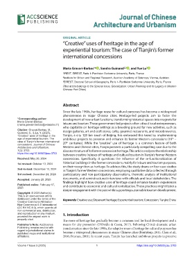 https://doi.org/10.36922/jcau.3703 between creative (re)uses of heritage and cultural tourism in Tianjin’s former Western