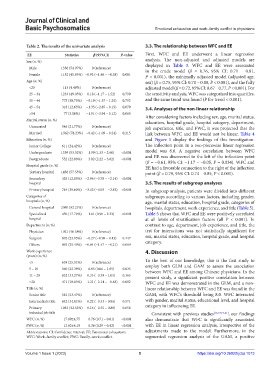 Table 2. The results of the univariate analysis 3.3. The relationship between WFC and EE