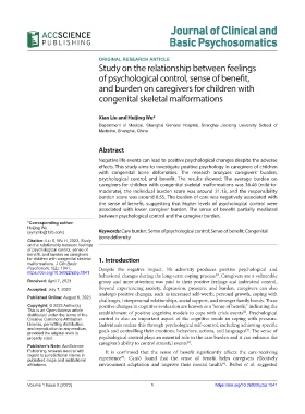 (synymb@126.com) Keywords: Care burden; Sense of psychological control; Sense of benefit; Congenital