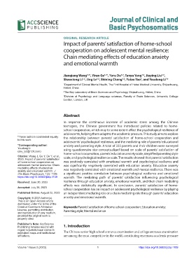 Creative Commons Attribution Keywords: Parents’ satisfaction of home-school cooperation; Education anxiety;