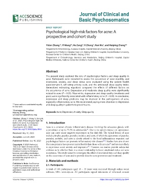 Haiping Zhang Keywords: Acne; Depression; Anxiety; Sleep quality