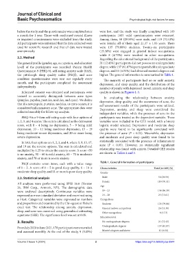 month, and the participants completed the assessment depression, and sleep quality, and the distribution of the