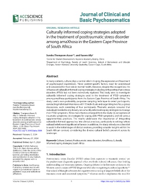 disorder among amaXhosa in the culturally informed approaches into clinical practices, particularly in settings where
