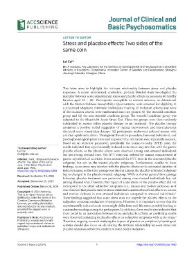 Lei Cai placebo effects, as the placebo effects were observed among non-stressed individuals