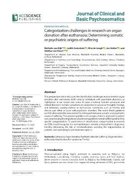 Copyright: © 2024 Author(s). Keywords: Euthanasia; Organ donation; Psychiatric disorder; Suffering; Organ donation