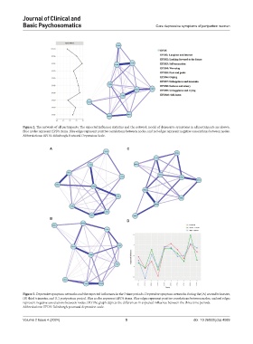 Figure 3. Depressive symptom networks and the expected influences in the 3 time periods. Depressive symptom networks during the (A) second trimester,