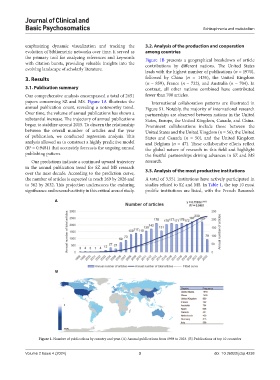 Over time, the volume of annual publications has shown a partnerships are observed between nations in the United