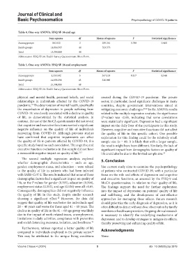 Table 5. One‑way ANOVA: HSQ SF‑36 and employment