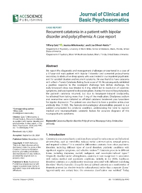 in a patient with bipolar disorder and Keywords: Catatonia; Bipolar disorder; Polycythemia; Neuropsychiatry; Antinuclear